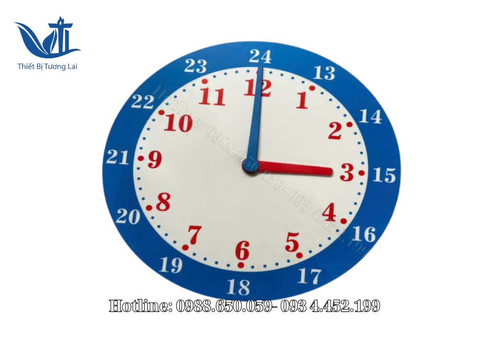 Mô hình đồng hồ không chỉ giúp học sinh đọc giờ mà còn giúp giáo viên giảng dạy khái niệm thời gian một cách sinh động, từ giờ, phút đến giây, hỗ trợ thực hành đo lường thời gian trong các hoạt động hằng ngày.